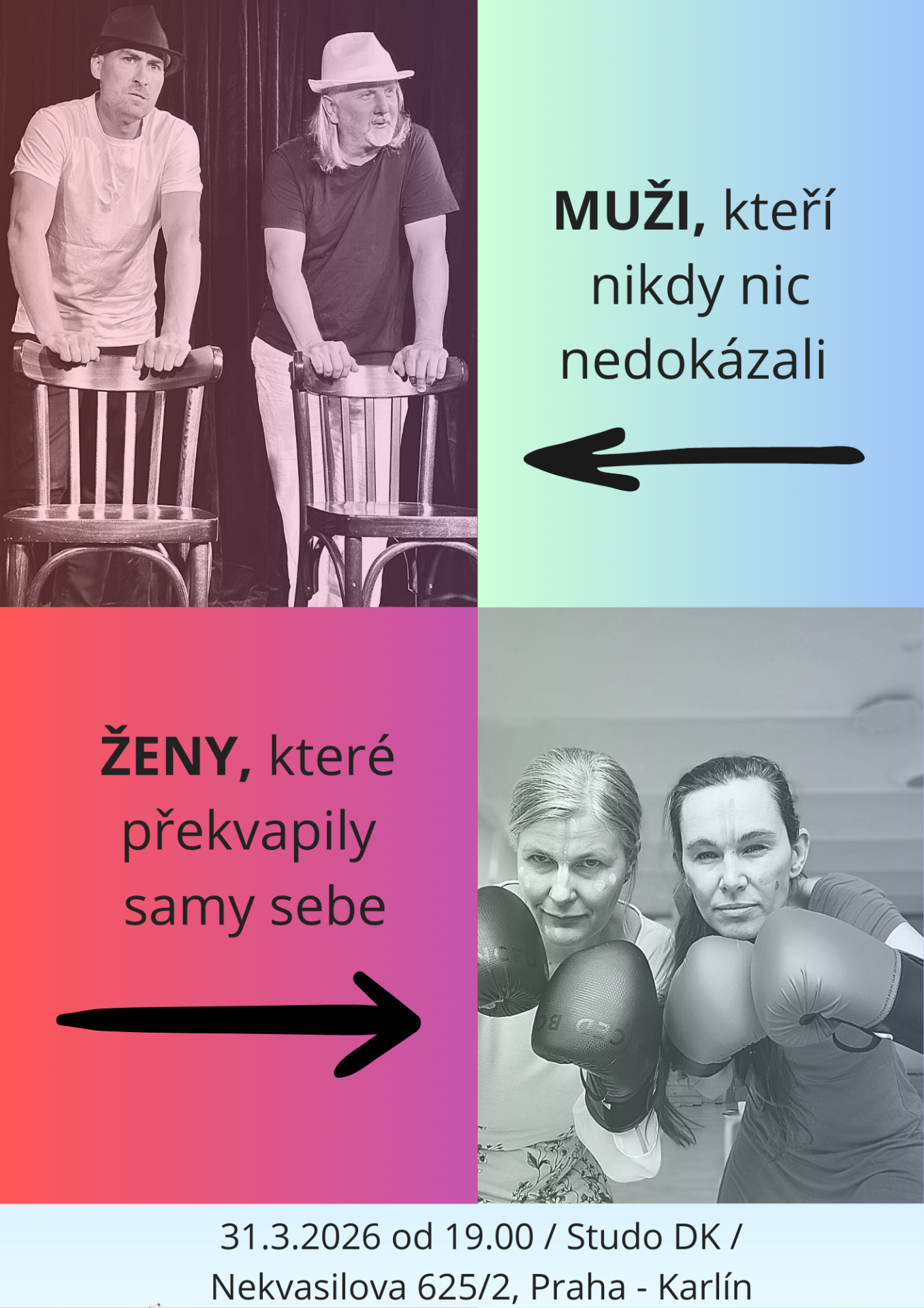 31.3. - divadelní představení - Muži, kteří nikdy nic nedokázali a Ženy, které překvapily samy sebe (Ždímačka) - PRAHA